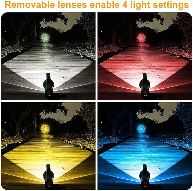 - 3 COLORS LENSES & EXTRA FLOOD SIDE LIGHT: Removable lenses enable white, red, yellow and blue light settings, it is perfect for hunting, boating, fishing, and camping. And if you need to see something close when repairing, working, reading, camping, extra soft flood light is the perfect, features 3 adaptable settings: High / Low / Red&Blue(Long press 3 seconds).