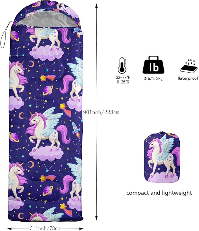 - 🌟 Unparalleled Comfort - Indulge in the epitome of comfort with our Unicorns sleeping bag. Meticulously crafted from premium microfiber fabric, it envelopes you in a cocoon of luxurious softness, ensuring an unparalleled sleep experience. The advanced 100% polyester surface material guarantees exceptional durability and long-lasting performance.