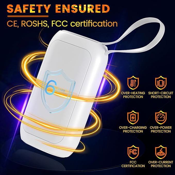 - 【Safe, Reusable Electric Hands Heater】Reusable hand warmers are more energy saving and cost saving than disposable hand warmers. High-precision resistance-capacitance components and UL, FCC, CE, Roshs certification, Built-in over-heating, over-charging, over-current, over-voltage, over-temperature, short-circuit protection.