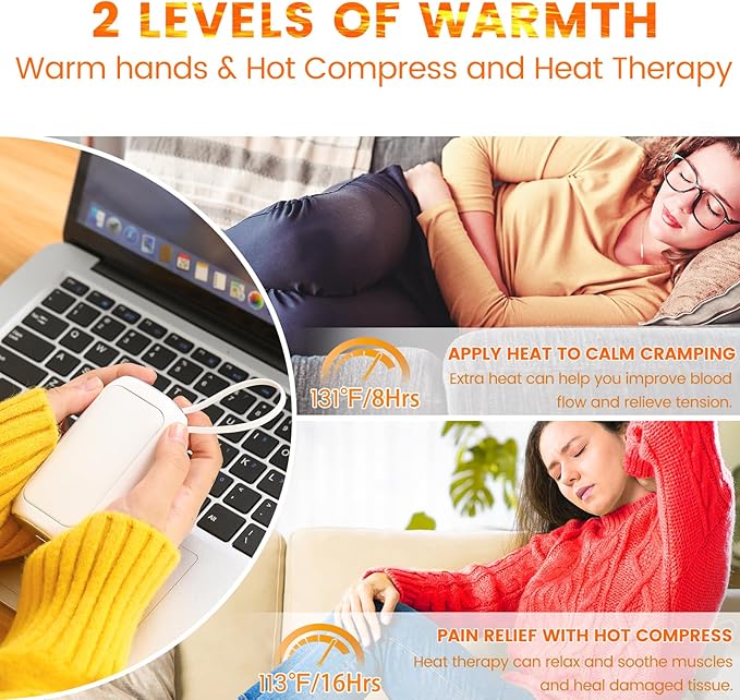 - 【2 𝐇𝐞𝐚𝐭𝐢𝐧𝐠 𝐒𝐞𝐭𝐭𝐢𝐧𝐠𝐬 𝐚𝐧𝐝 𝐐𝐮𝐢𝐜𝐤𝐥𝐲 𝐇𝐞𝐚𝐭 𝐔𝐩】The hot hands hand warmer heat up quickly within 2 seconds. Low 104°F-113°F, High 113°F-131°F. Help hot hands, heat therapy and relieve hand pain from arthritis, neuropathy and raynauds. Perfect for Outdoor Indoor Golf Camping Hunting Pain Relief Watch Football/Baseball, Warm Gifts for Men Women Kid Birthday Christmas.