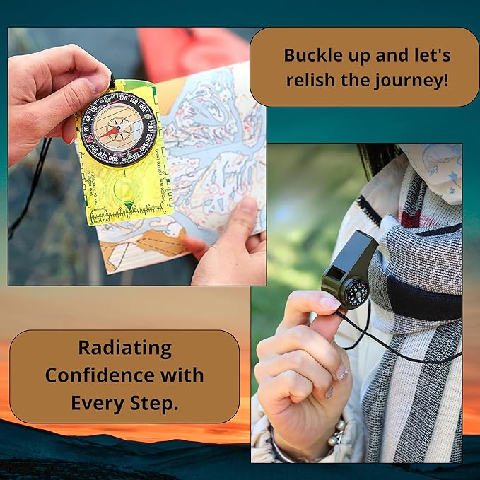 • PERFECT FOR OUTDOORS ADVENTURES: This PACK OF 2 waterproof hand compas is ideal for outdoors adventures with friends, it consists of Acrylic Non-magnetic Baseplate to prevent interference with the magnetic needle and ensure accurate reading. Their cool features will help you to read maps and have a better experiance in your adventures, and since it comes with a strap it is very easy to use and carry