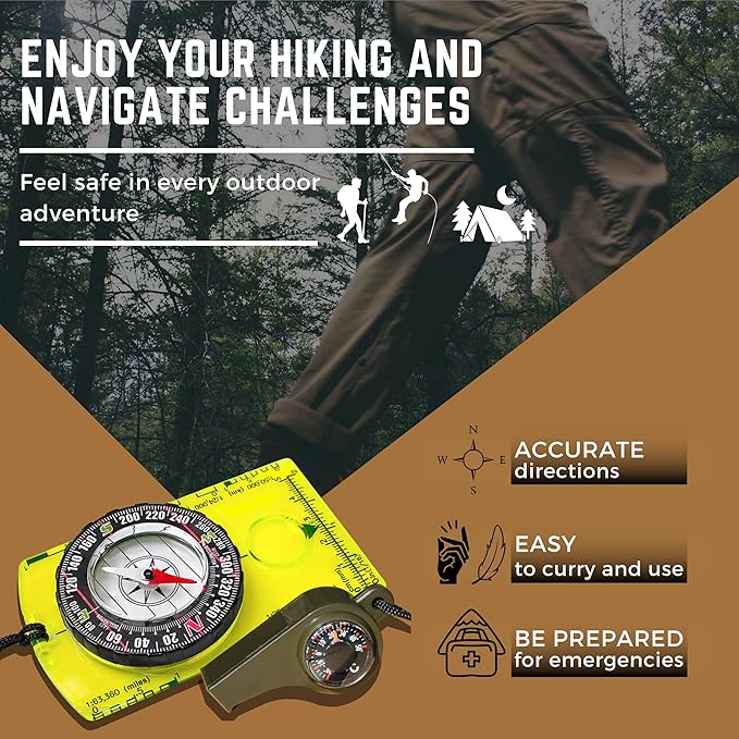 • HIGH QUALITY: This is a high quality product that it is a waterproof compass made with acrylic materials to prevent interference with the magnetic needle and ensure accurate readings. It is durable, compact, and portable, that makes it perfect for every outdoor activity