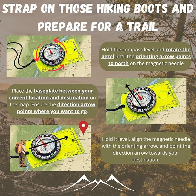 • HIGH QUALITY: This is a high quality product that it is a waterproof compass made with acrylic materials to prevent interference with the magnetic needle and ensure accurate readings. It is durable, compact, and portable, that makes it perfect for every outdoor activity