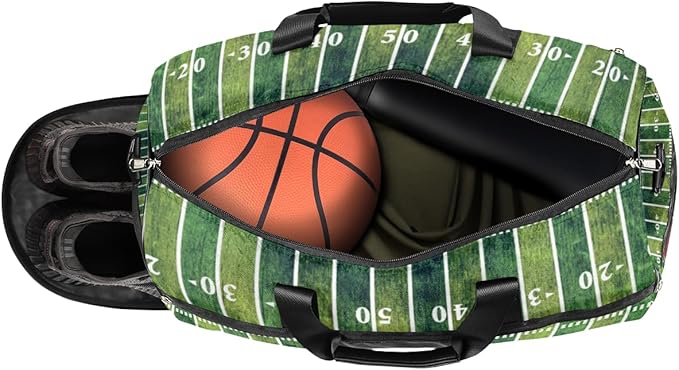 American Football Field And Ball Dry Wet Depart Duffle Overnight Bag with Shoes Compartment & Wet Pockets, Water Resistant Weekender Travel Gym Pouch For Swim Gymnastics Ballet Sleepovers