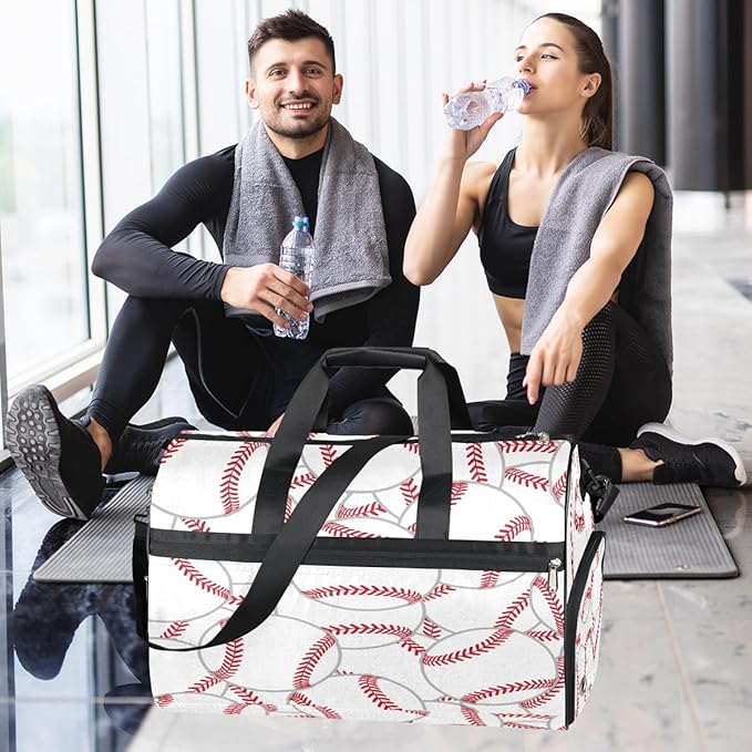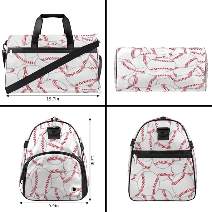 Sprot Baseball Dry Wet Depart Duffle Overnight Bag with Shoes Compartment & Wet Pockets, Water Resistant Weekender Travel Gym Pouch For Swim Gymnastics Ballet Sleepovers