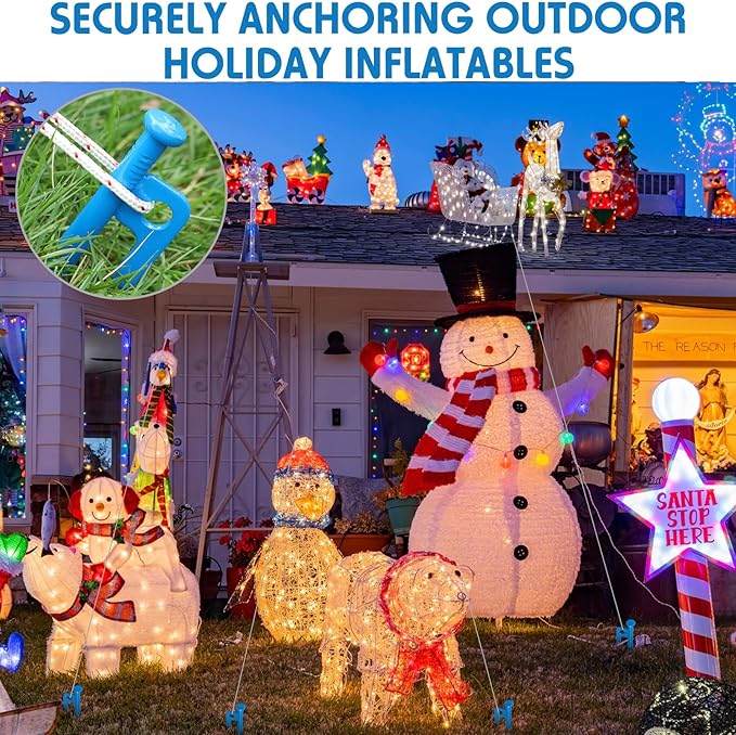 Blulu 24 Pcs 8/12/16 Inch Tent Stakes Heavy Duty Steel Metal Tent Pegs Unbreakable and Inflexible Metal Stakes Tent Spikes for Camping, Yard Decoration, Picnic, Tarp(Blue, 8 Inch)