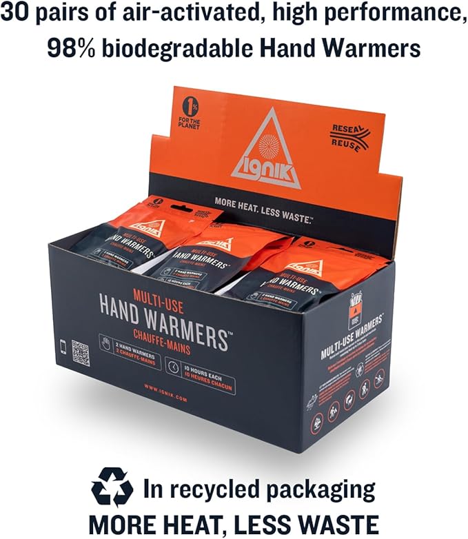 - 30 pairs of air-activated, high-performance biodegradable hand warmers provide up to 10 hours of heat -- can be used all at once or resealed and used in increments