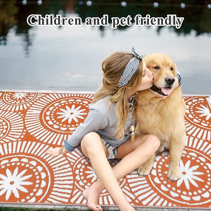 - Waterproof & Easy Cleaning: The outdoor/indoor rugs are water proof and easy to clean. Our rugs resist lots of stains: milk, wine, cola, grass and more. Simply sweep away dirt with water and the breathable design make it possible to airing dry in few minutes. If you are outside without water, you can just wipe it with cleaning cloth or shake it, rid the dust off. Great for keeping dogs out of the dirt.