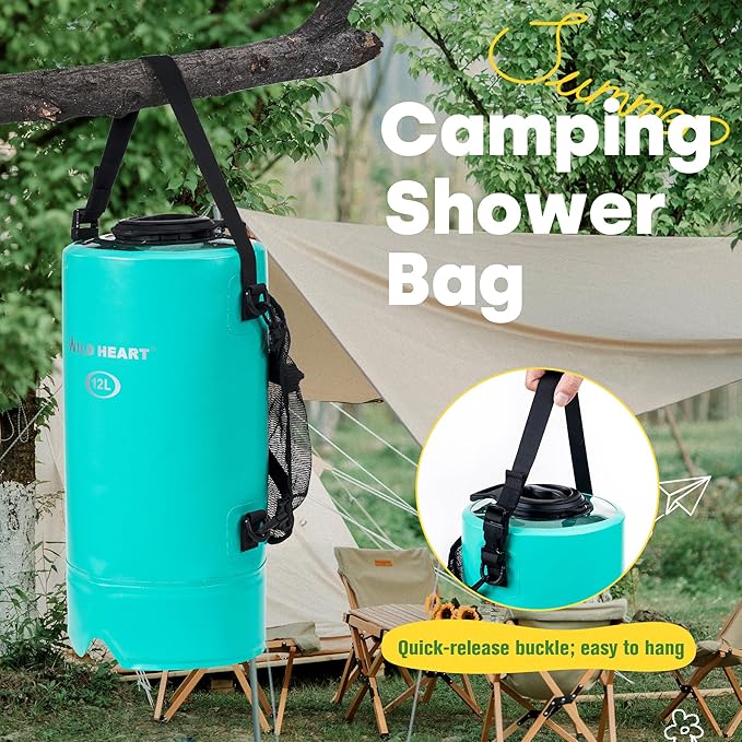 WILD HEART Camping Shower 22L/ 12L Portable Shower for Camping with Pressure Foot Pump and Hose - Solar Shower Bag Backpack for Camping, Road Trip & Outdoor Use