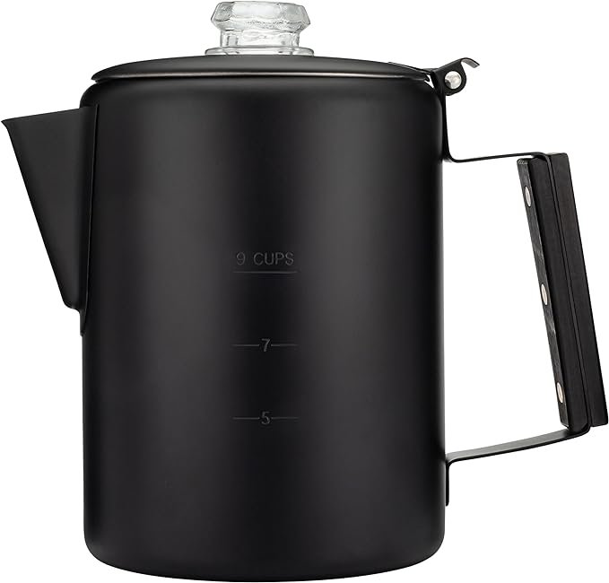 - PROTECTIVE BLACK COATING — We coated an already sturdy & durable percolator to make our sleekest looking coffee maker yet. Brew in style and make your bold camping coffee in something really cool lookin’.