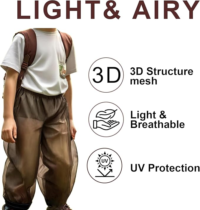 Aventik No-See-Um Mesh Youth Mosquito Jacket, Youth Mosquito Pants M&L Super Light, Keep Safe Cool, UV Protection