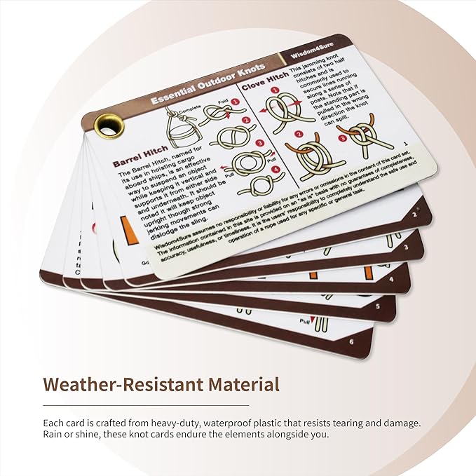 - Weather-Resistant Material: Each card is crafted from heavy-duty, waterproof plastic that resists tearing and damage. Rain or shine, these knot cards endure the elements alongside you.