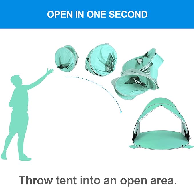 - UPF 50+ & Water Repellent: The water repellent polyester with taped seams keeps the inner shelter dry, and the silver coated tent surface reflects and absorbs sunlight to block up to 98% of the suns harmful ultraviolet rays which protect user from ultraviolet rays.