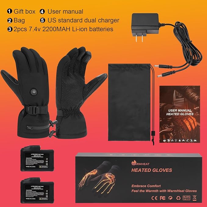 - 【Exceptional Thermal Performance for Outdoor Activities】 Suitable for both men and women, our electric skiing gloves are your go-to for winter sports like skiing, motorcycling, hiking, cycling, hunting, fishing, dog walking, climbing, snow shoveling, and outdoor work. They offer enduring warmth and comfort. Each set includes a pair of gloves, two 7.4V 2200mAh batteries, a US dual charger, portable storage bags, and instructions