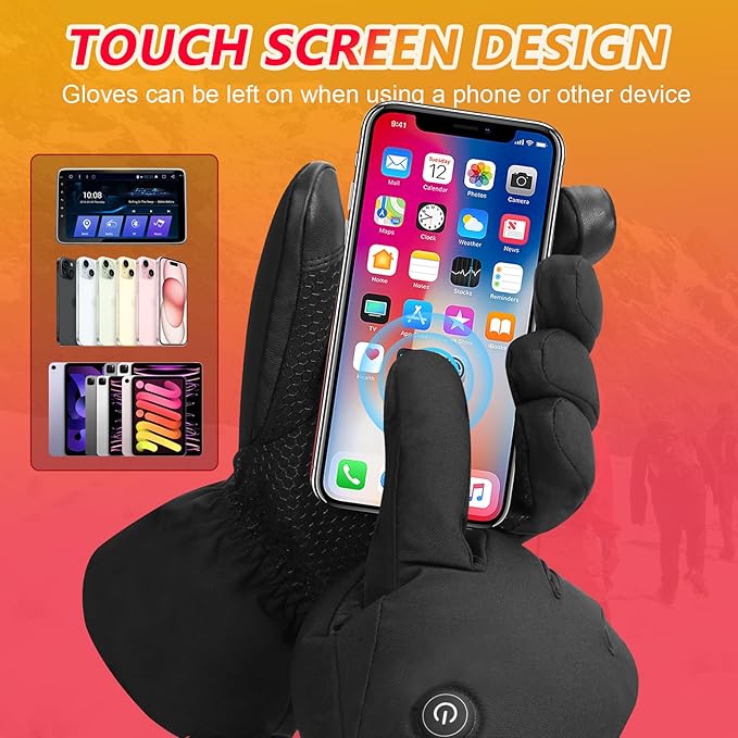 - 【 Li-ion Batteries & Smart Touch Capability】 Our heated gloves feature smart touch functionality on the fingers, allowing easy operation of smart devices without removal. Powered by two rechargeable Li-ion batteries and a safe US standard dual charger, these gloves provide three heat settings for customizable comfort. They offer up to 8.5 hours of continuous heat, preventing overheating even in the harshest conditions