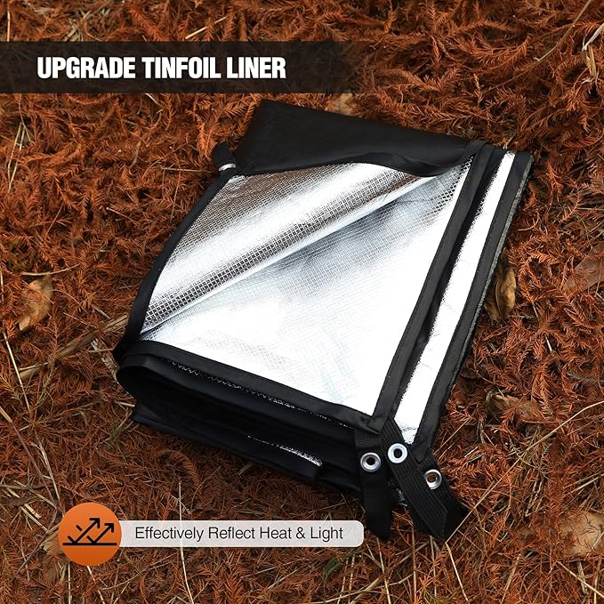 - Multifunctional Survival Blanket: The reflective liner can help to preserve warmth in bad weather. It can reflect sunlight as a help signal when danger happens. It is not only a tent tarp, ground cover or shelter, but also a warm emergency blanket.
