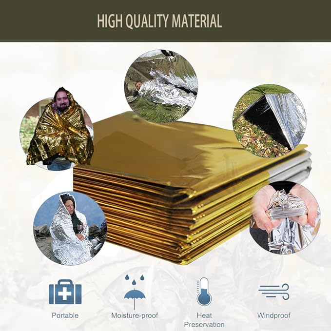 - 【ALUMINIZED TECHNOLOGY】: With its advanced aluminized technology, this emergency blanket provides exceptional heat retention, keeping you warm and protected in any weather. Whether you're hiking, camping, or facing an emergency situation, this blanket is your best defense against the elements.