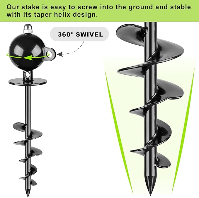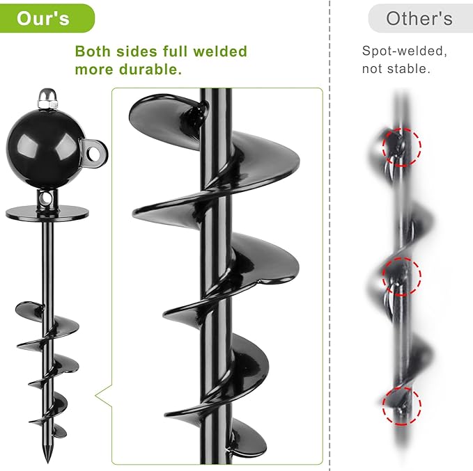 - Also could be a heavy duty ground anchor to hold your green house, trampoline, camping tents, RV awning side shade, swing sets and so on.