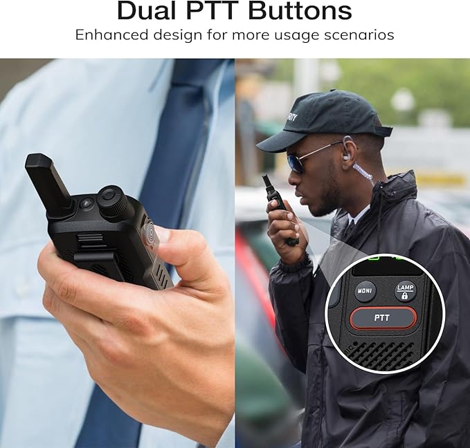 - User-Friendly Design, Perfect to Carry out: It features a clear, backlit LCD screen, an easy-to-use button layout with dual PTT buttons, and a flashlight for low-light conditions. It weighs only 33g (4.7oz) and has a belt clip and lanyard for easy portability. With up to 3 miles long talking range, it is ideal for outdoor activities.