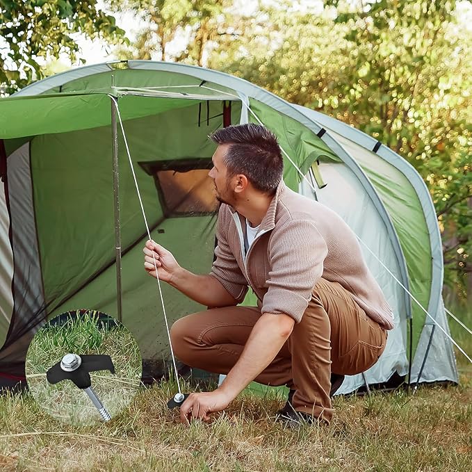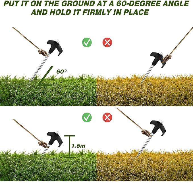 - Strong and Secure: our tent stakes heavy duty screw offer enough strength under windy conditions and are suitable for use in grass, dirt, harder soils and sand; They are important for taking care of your outdoor equipment; Pointed items are included, it is recommended to wear tool gloves to avoid injury when using, and please keep it away from kids