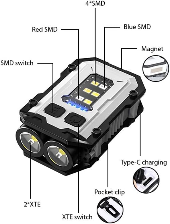 - LED+COB Lamp: Built-in lithium battery, up to 5-10 hours of connected work; Type-C fast charging.