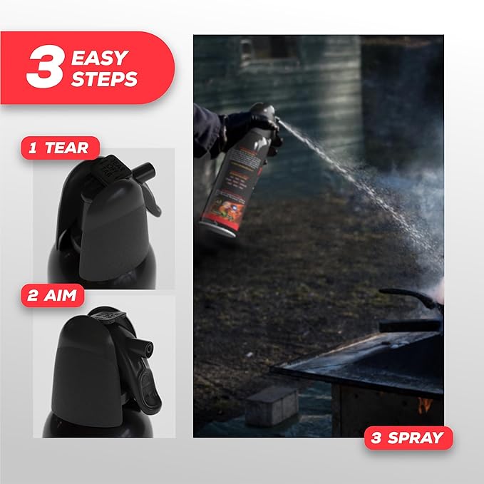 - Efficient and User-Friendly Performance: Combat fires effortlessly with the Fire Fix Fire Spray's intuitive design. Utilizing a revolutionary foam formulation, it rapidly expands to suppress fires, halting their progression effectively. Simply tear off the tab, hold the can at a distance of 3 to 4 feet from the fire, direct the nozzle, and spray to initiate firefighting action.