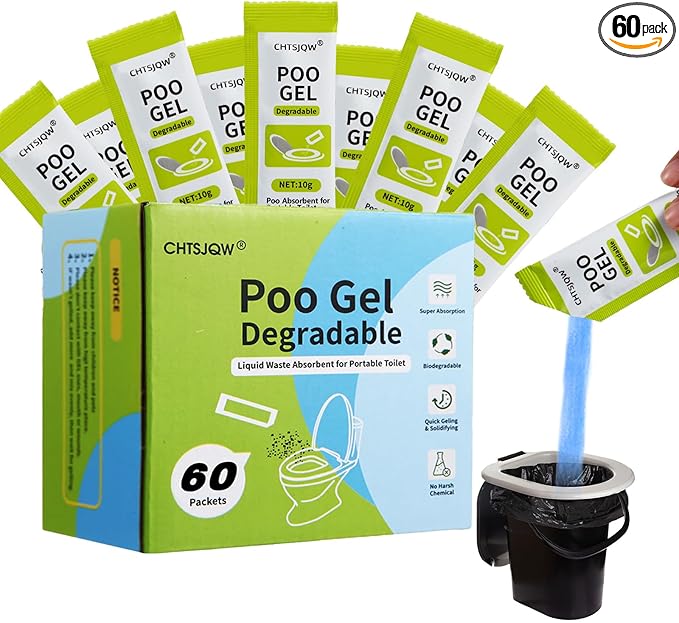 Portable Toilet Absorbent Gel Powder, 60 Pack Poo Gel for Camping Eco Absorbent Gel, Poo Urine Powder for Camping Outdoor Hiking Fast-Acting Gel