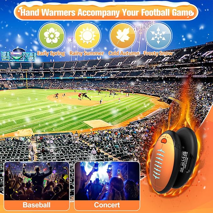 - 🔥【2023 Newest 2 in 1 Rugby Hand Warmers】The hand warmer takes on the unique shape of rugby which better fits in line with the curve of the palm to warm your hand. The double-sided heating and buckle design can easily be converted into 2 in 1 hand warmers. It's perfect for your daily commuting, indoor reading and writing, sharing warmth with your friends. The hand warmer is must-have perfect GIFT for the 2023-2024 Super Bowl football game.