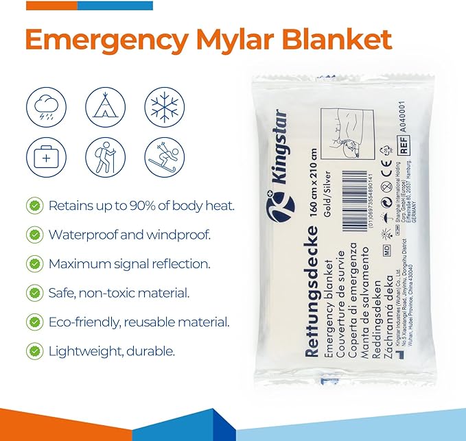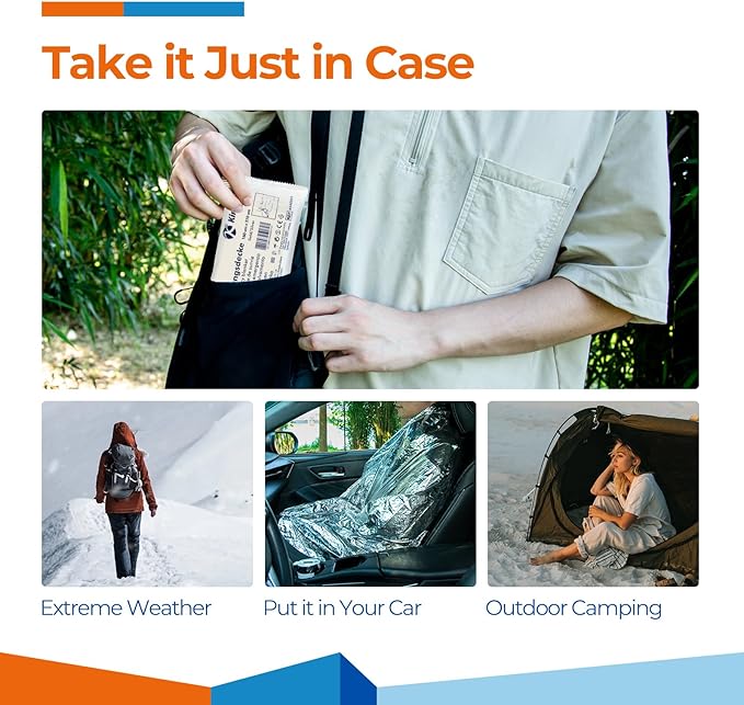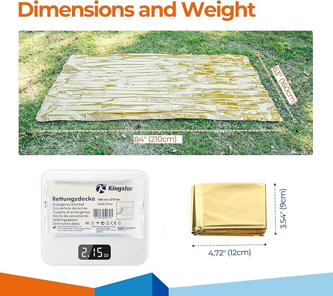 - LARGE DUAL SIDED SURFACE: The emergency blanket size is 62"x83", cover as much of head,torso,and limbs as possible,trapping body heat of human up to 6 foot 5 inch tall