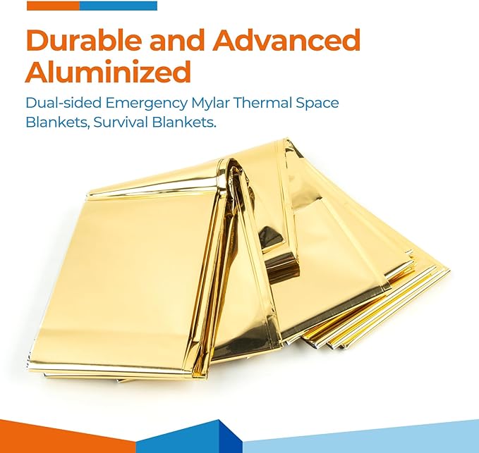 Emergency Blankets (4 Packs, 83" L x 62" W) Large Gold Mylar Thermal Blankets for Survival and Protection,Space Blanket Survival Kits Camping Blanket, Ideal for Outdoors, Hiking, Survival