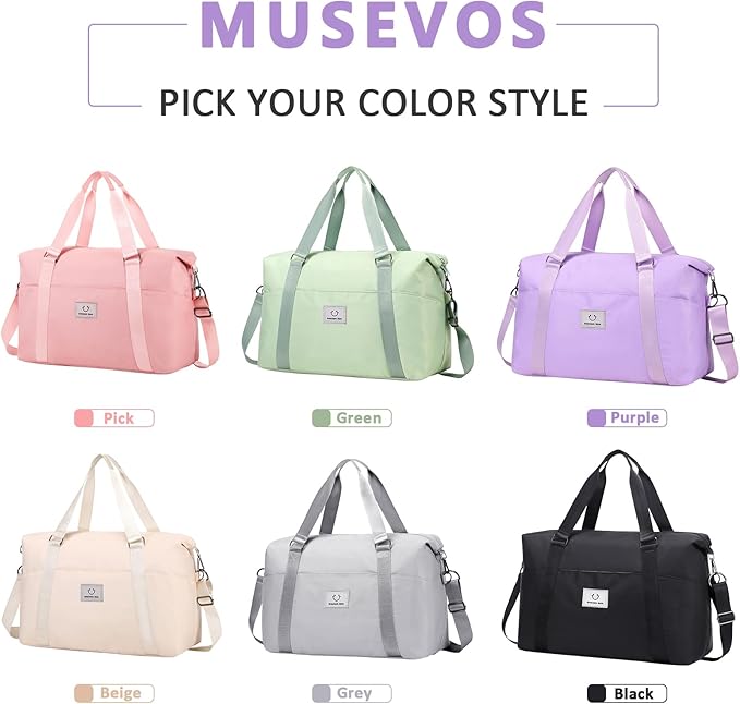• FASHION MEETS FUNCTION:MUSEVOS weekender Overnight Bag for women/men with unique smiling logo(each bag has a sleek look),solid color Carry on Tote Bag suits for any ocassions like airplane, campus,sports,travel. And you will get more compliments when carry it.