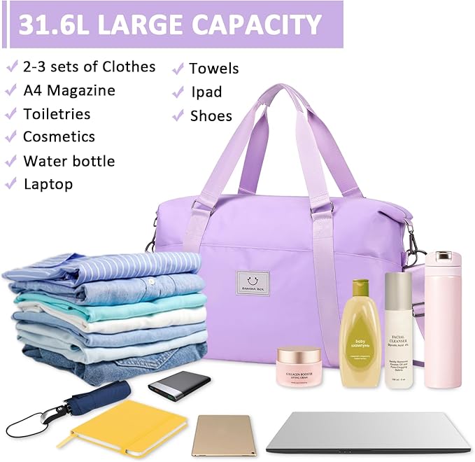 Gym bag for Women, Travel Duffel Bags with Trolley Sleeve, Weekender Overnight Bag, Carry on Tote Bag Dance Bag