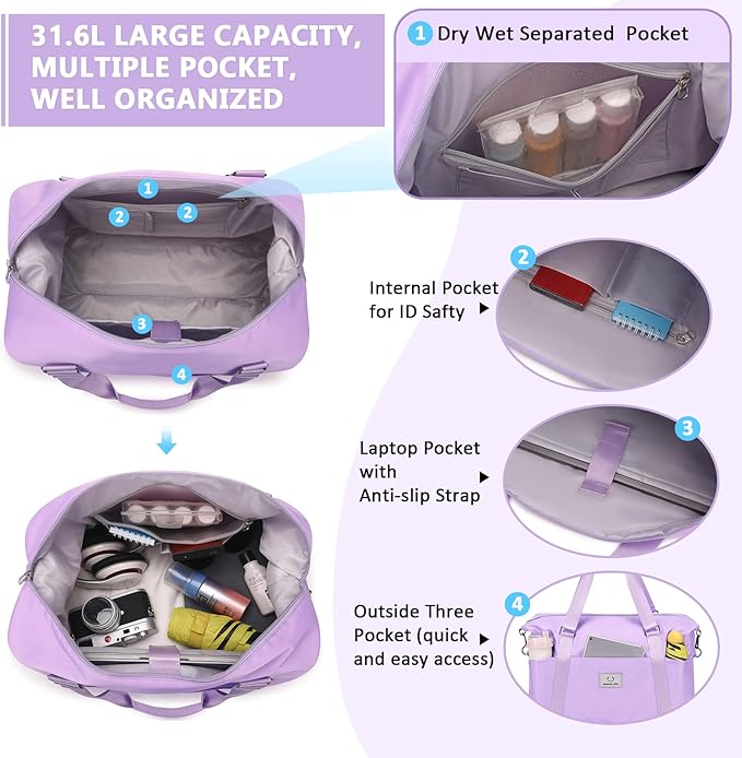 Gym bag for Women, Travel Duffel Bags with Trolley Sleeve, Weekender Overnight Bag, Carry on Tote Bag Dance BagB0CLY8CLCQ