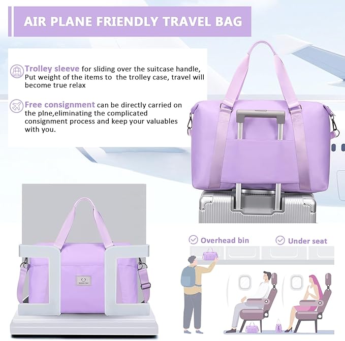 • AIRPLNE FRIENDLY TRAVEL BAG:MUSEVOS lightweight duffle bag for women can be directly carried on the plane, eliminating the complicated consignment process and keep your valuables with you. And the travel bag with trolley sleeve for sliding over the suitcase handle, put weight of the items to the trolley case, travel will become true relax airline travel. Your ideal overnight weekend boarding bag for business or personal travel.