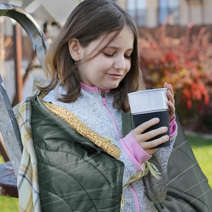 Outdoor Camping Blanket with Sherpa Lining, Extra Warm Thick Camp Blankets & Puffy Ultralight Soft Poncho DWR Camping Quilt for Cold Weather, Adventure,Sleeping,Backpacking 56"x 40"
