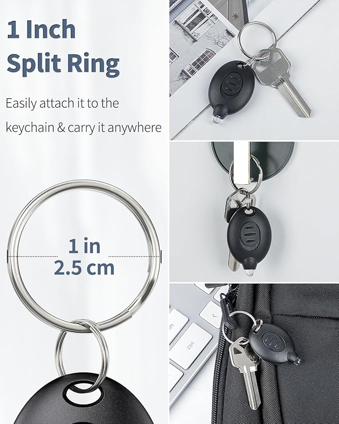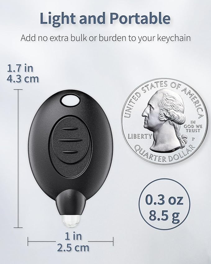 - Light & Portable: Size: 1.6" L x 1" W; Weight: 0.2 oz. Easily attach the mini LED light to your keychain with the split ring and carry it around wherever you like.