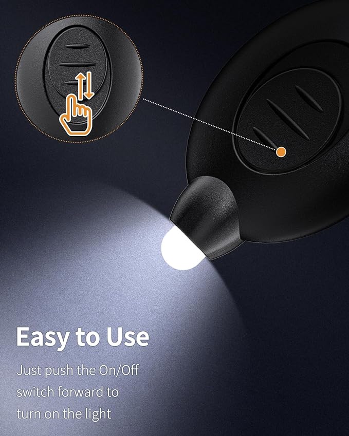 - Easy to Use: Simply push the On/Off switch forward to turn on the light. It’ll continue to light and illuminate the way ahead. No longer worry about walking at night.