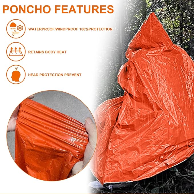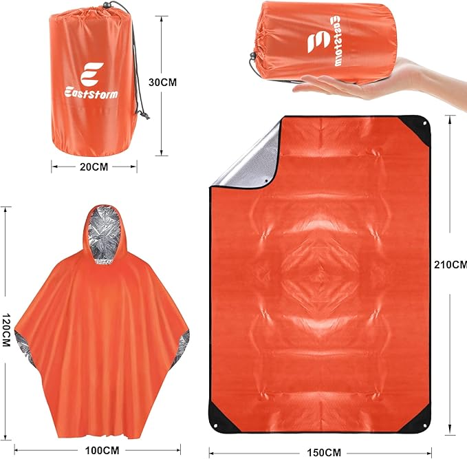 - 【Foldable & Portability】The overall folded size is 24*18*5cm and the weight is 600g, which is very convenient to carry around and put in a backpack or car trunk. The unfolded size is 210*150cm, which can easily cover two people, and one person can wrap the whole body. The unfolded size of the emergency poncho is 130*100cm, and the storage size can be held with one hand.