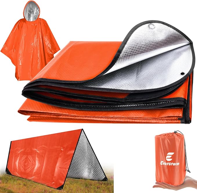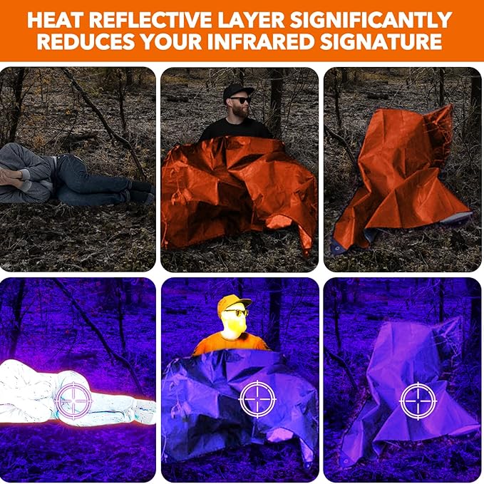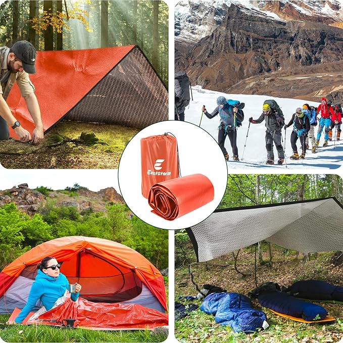 - 【Multiple Uses】Our emergency sleeping bag can not only use as an emergency blanket but also as a tarp for a make shift survival shelter, bivy sack all-in-one when camping, hunting, backpacking or boating. Keep one in your car for the unexpected! Space Blanket effectively retain 90% of heat, providing insulation in survival situations. It's an essential part of any survival or camping kit to keep you warm in a pinch!
