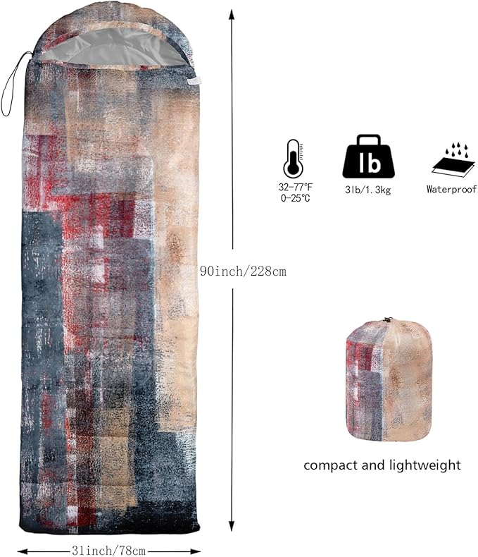 - Premium Material - The camping sleeping bag is made of premium 220T ripstop microfiber fabric,comfortable and breathable,lined with 220T cotton pongee. The waterproof outer protective shell is made of a unique hexagonal design and high-quality Material with double S-stitching and microfiber filling for optimal warmth and insulation to protect you from the elements. The bright colors are loved by boys and girls,great for kids and adults alike!