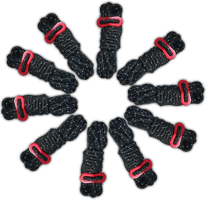 10 Pack 4mm Outdoor Guy Lines Tent Cords Reflective Canopy Wind Rope Lightweight Camping Rope with Aluminum Guylines Adjuster for Tent Tarp, Canopy Shelter, Camping, Hiking, Backpacking Black