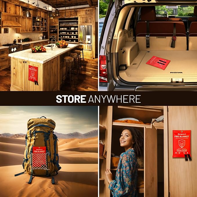- 𝗦𝗮𝗳𝗲𝘁𝘆 𝗮𝗻𝗱 𝗔𝗱𝘃𝗮𝗻𝘁𝗮𝗴𝗲𝘀: Complies with two established safety standards for fire blankets, CE (EN 1896:1997) and SGS (EN 1896:2019). Unlike regular fire extinguishers, it's easy to carry and store, convenient to use, capable of quickly and easily extinguishing small fires, and suppressing fire spreading.