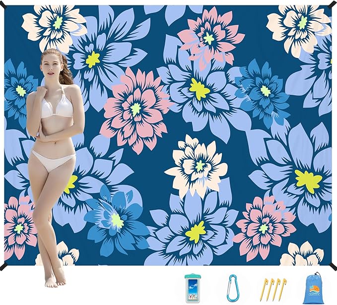 - 🛒PACKABLE SAND RESISTANT BEACH BLANKET MAT:The package includes 1 beach blanket,4 ground stakes for windproof,1 carabine for carry.You can enjoy a wonderful outdoor time with your family.If you have any questions,please don't hesitate to contact us.