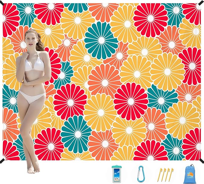 - 🛒PACKABLE SAND RESISTANT BEACH BLANKET MAT:The package includes 1 beach blanket,4 ground stakes for windproof,1 carabine for carry.You can enjoy a wonderful outdoor time with your family.If you have any questions,please don't hesitate to contact us.