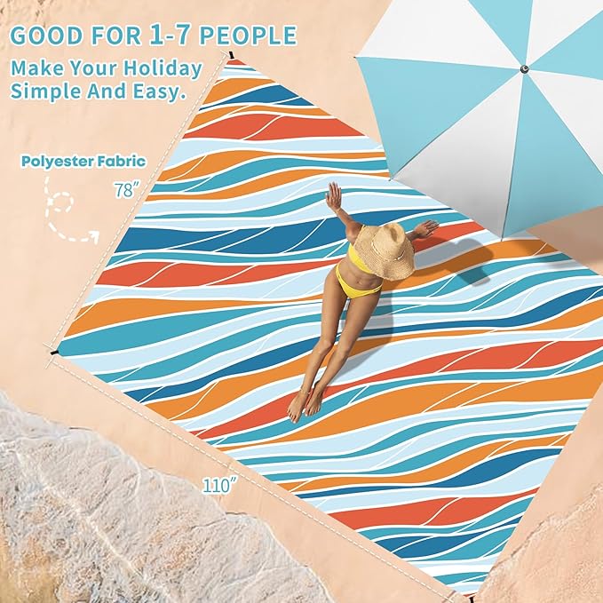 - ⛱ Beach Blanket Oversized:Tear-resistance,dry quick.Also can be used as a rainshed,sunshade,tent,toddler crawl,emergency mat etc.Feel comfortable to lying down.Won't irritate your skin and fine stitches.