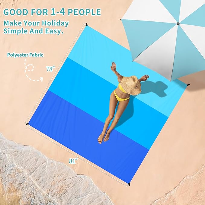 - 🌴Beach Blanket Waterproof Sandproof:78''×81''size beach blanket,suit for 1-4 adults.Made by parachute fabric,odorless,tear-resistant 210T polyester.Light weight and small after folding.Only 12 oz,small and mighty,which is easy to carry!