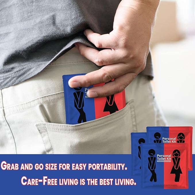 - On the Go Bathroom Kit: Perfectly designed for outdoor enthusiasts, this packable and portable kit provides everything you need for bathroom emergencies during hiking, camping, or any travel activities.