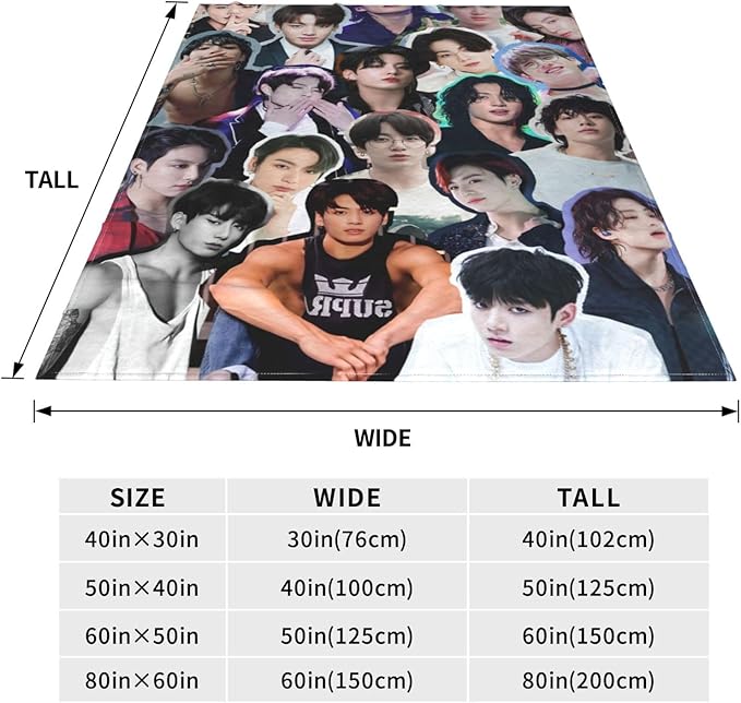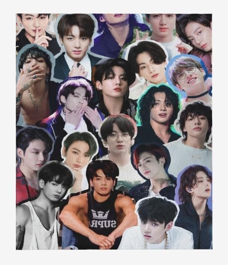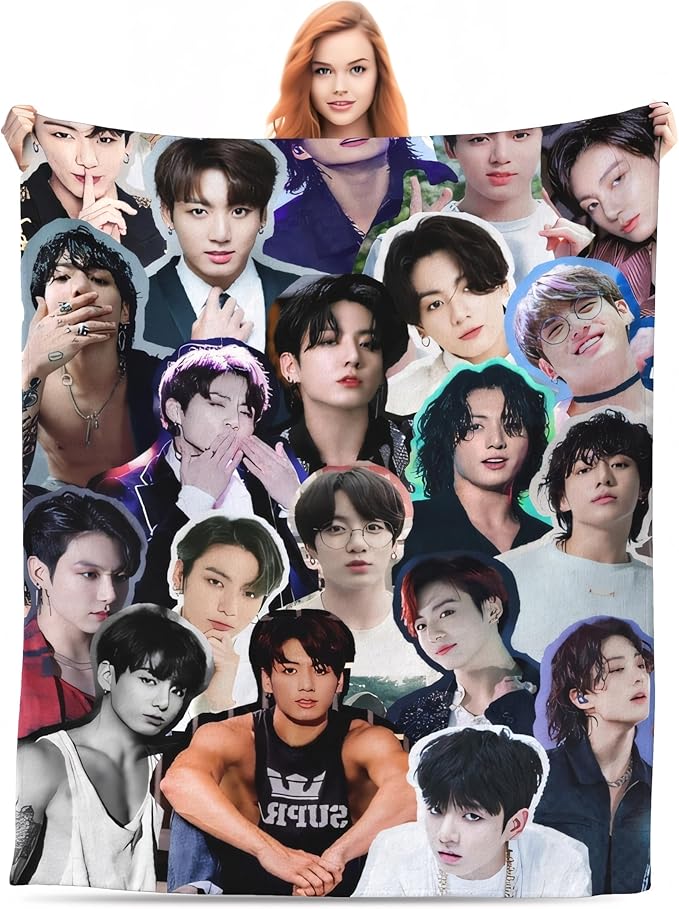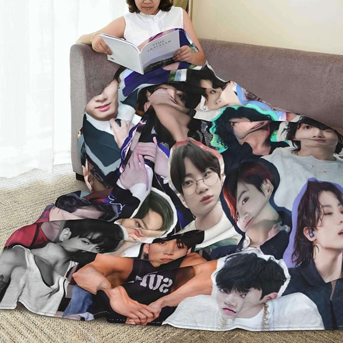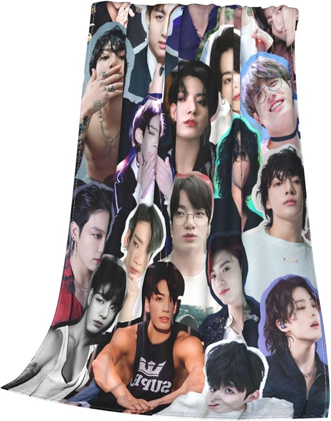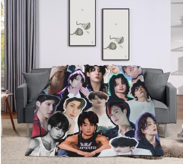 Jungkook Blanket Jeon Jung Kook Soft and Comfortable Warm Fleece Throw Full Picture of Idol Group Blankets 50"X60" Beach Blankets Gift for Dorm Room Decor Sofa Bed Camping Travel