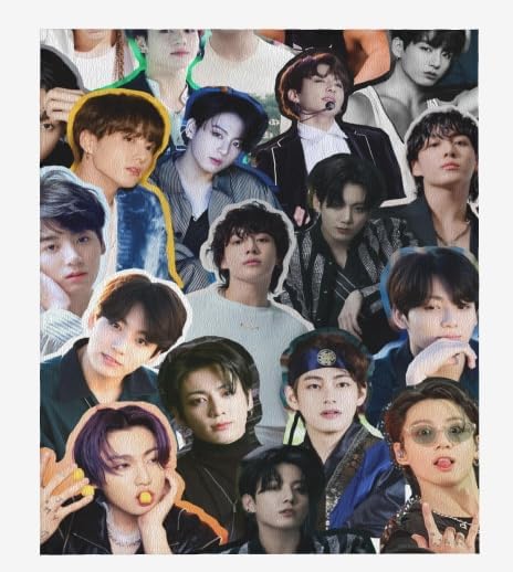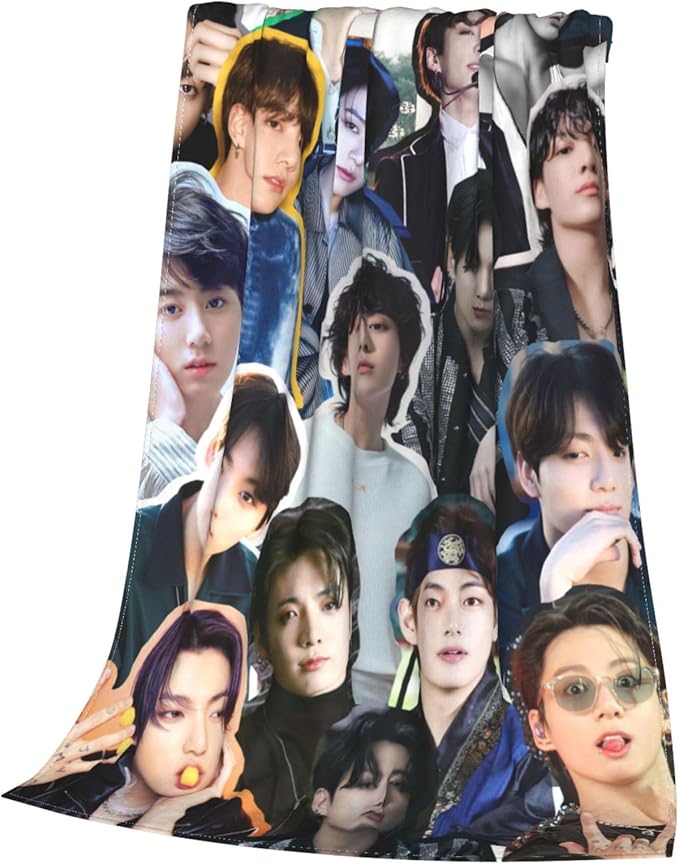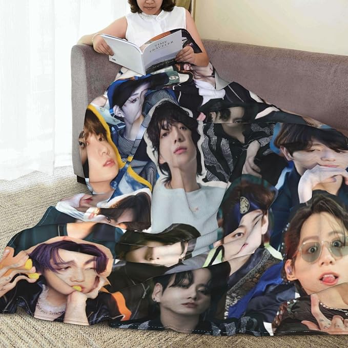 Jungkook Blanket Jeon Jung Kook Soft and Comfortable Warm Fleece Throw Full Picture of Idol Group Blankets 50"X60" Beach Blankets Gift for Dorm Room Decor Sofa Bed Camping Travel