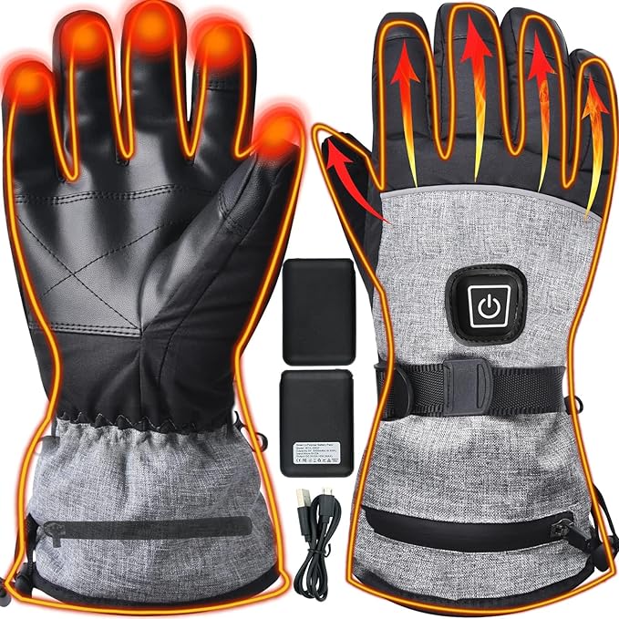 - 【 Men's heated gloves with 6000mAh Capacity Battery 】- Adjustable Temperature heated gloves, with removable large-capacity rechargeable batteries. Motorcycle-heated gloves have 3 levels of heating: high, medium, and low-temperature settings. electric heated gloves are lightweight, and keep your hands warm and agile.